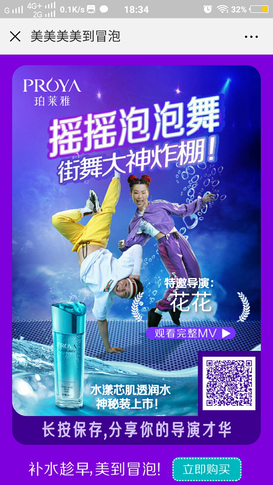 珀莱雅推出的宣传类H5,用户通过摇一摇手机即可帮助dancer完成泡泡舞视频拍摄,互动感十足。