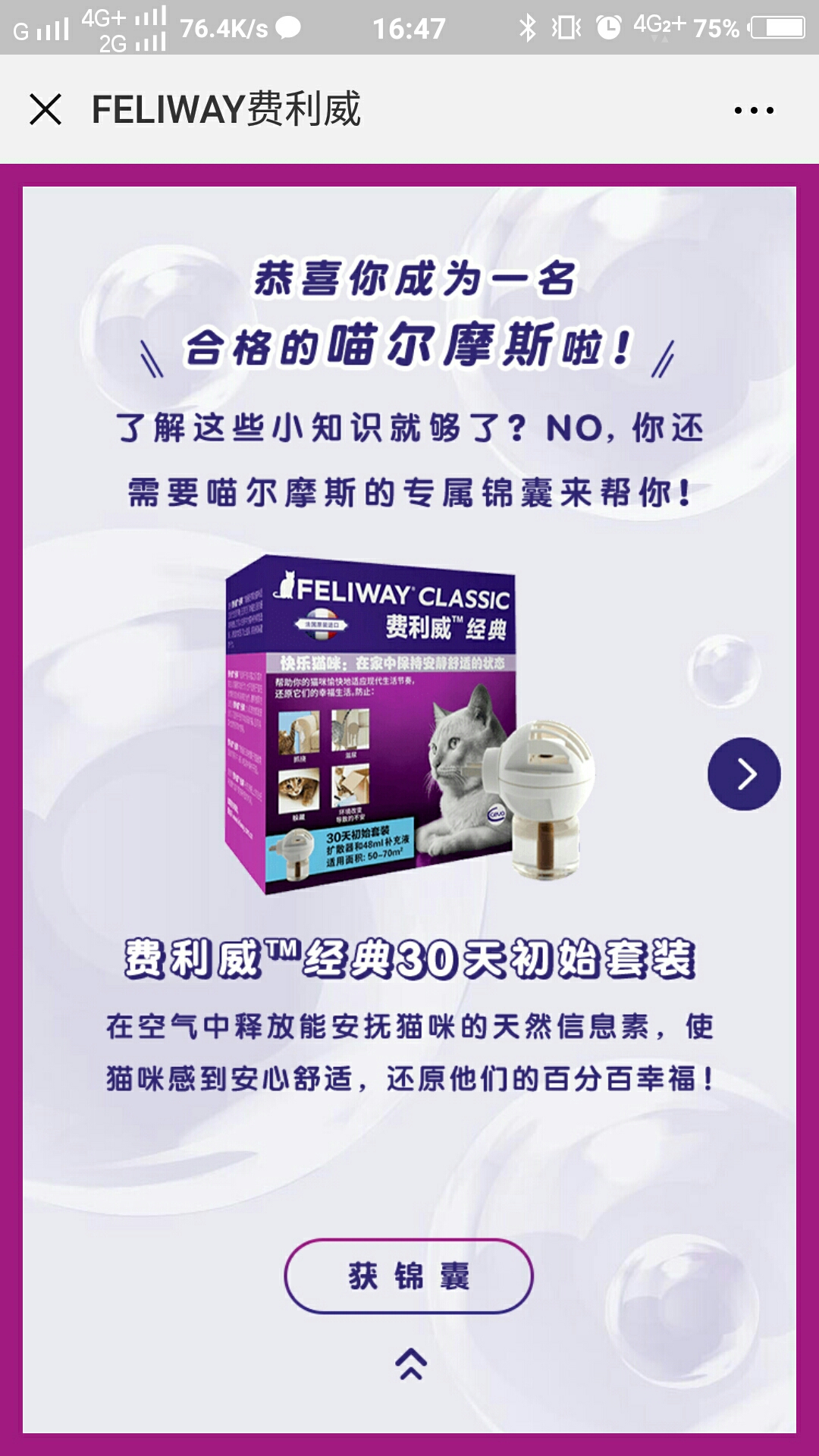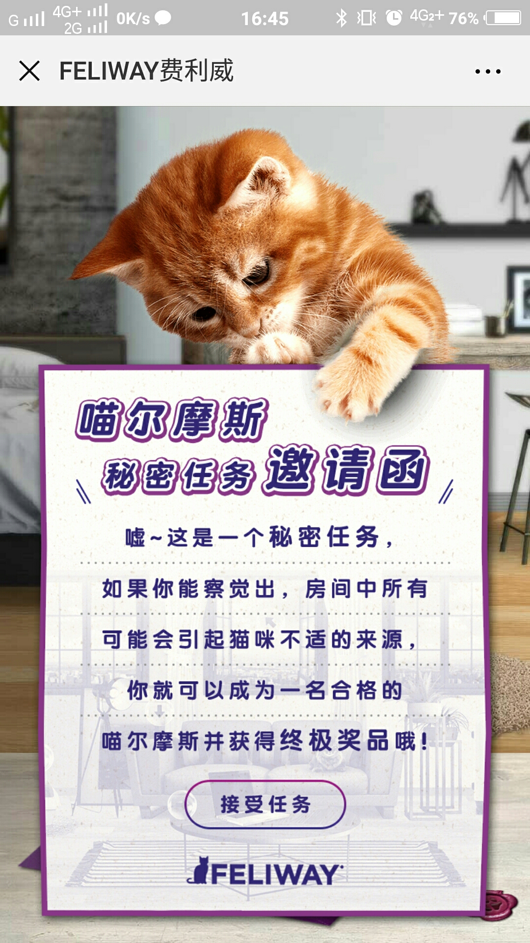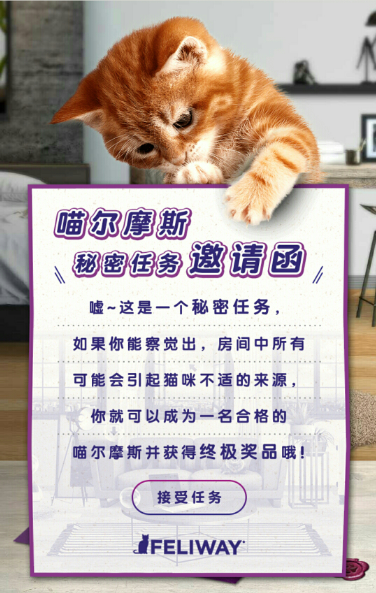 这是一封来自费利威 FELIWAY的邀请函,对于爱吸猫人士来说,吸引力十足。要如何了解喵咪的喜好呢,这些都藏在这支H5里。