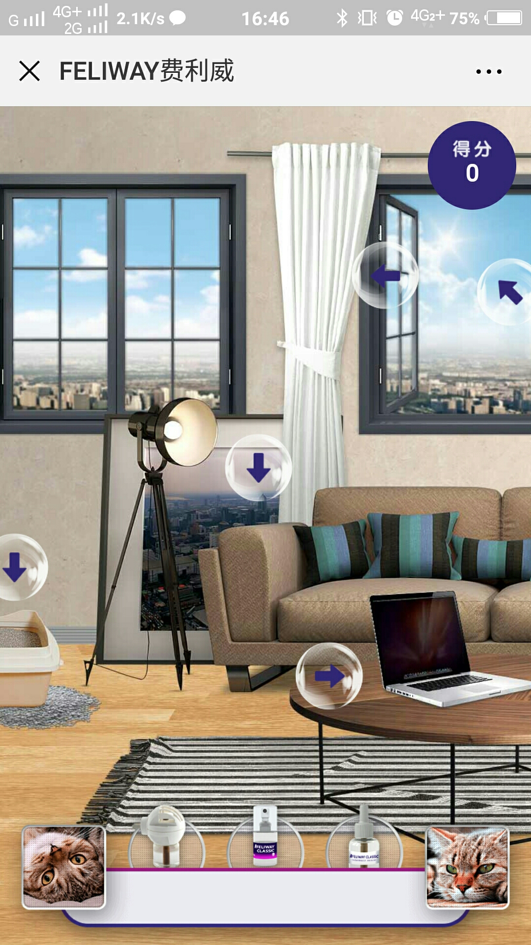 可爱的动效,可爱的喵咪吸睛,另外模拟真实居住环境,给人以真实感,小游戏以及公布排行榜的形式,增加了用户的参与度。