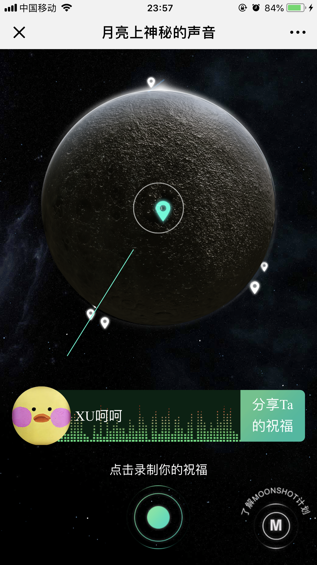 1. 内容:开启月亮的神秘声音带给大家中秋祝福,转动地球移到有坐标的地方就会播放一段语音,给人感觉很温暖。