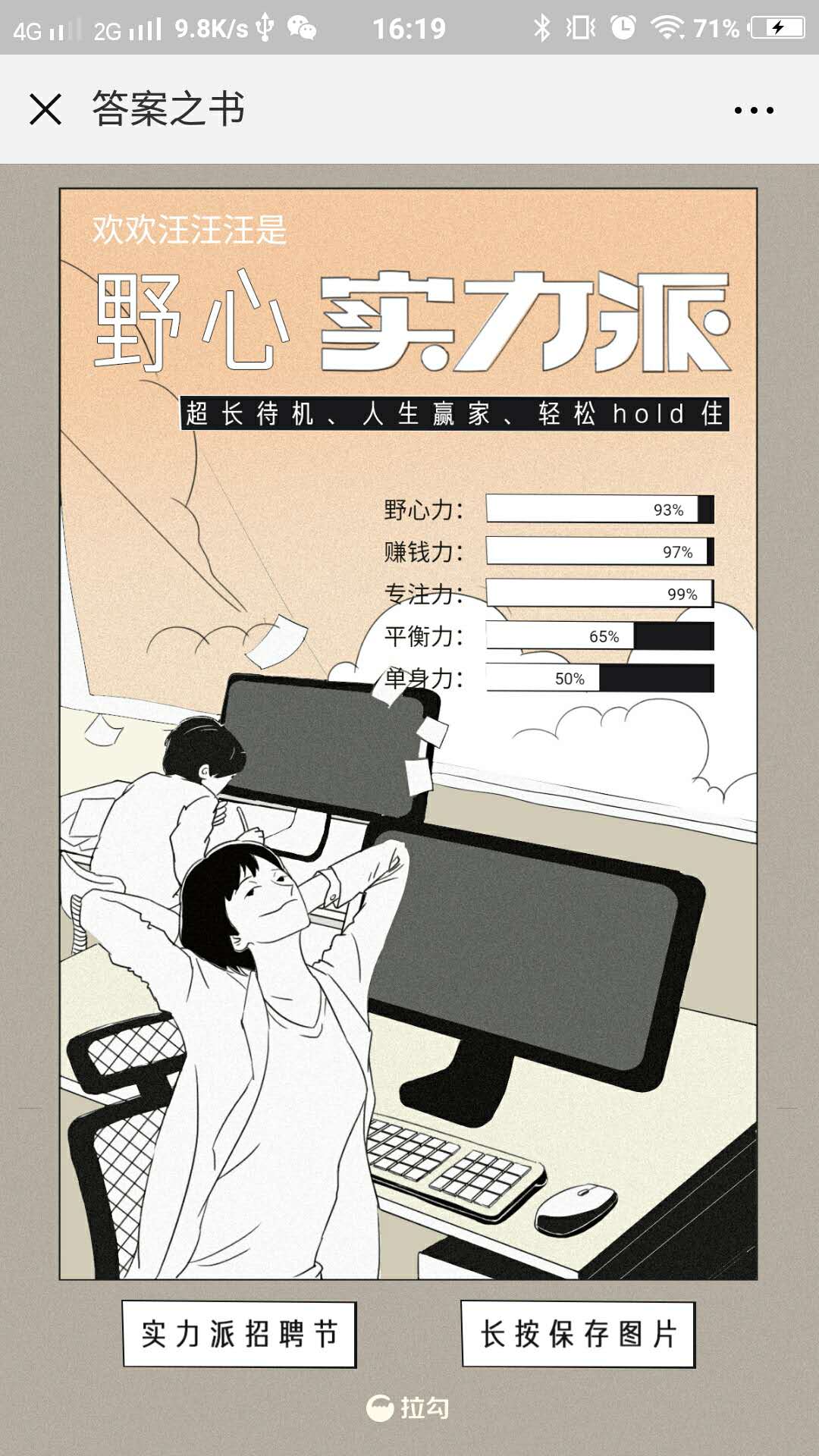 此条H5由拉勾出品,在金九银十的招聘季,用一本线上答案之书,引发人们对人生选择题的思考