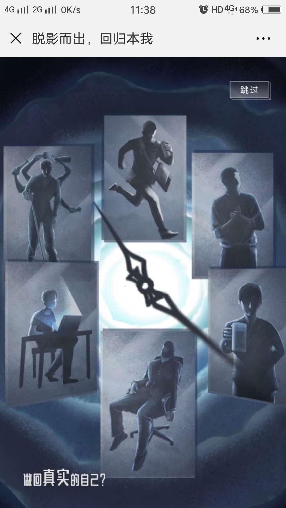策划上,以张艺谋最新作品电影《影》中“本我与替身”的故事内核,与普通人的生活相结合,表达每个人在日常中都是自己的影子。前面有一段短视频,从电影角色的自述出发,过渡到影子与每一个“你”的对话,也可选择跳过动画。最后通过陀螺仪以全景式的交互左右转动手机选择人物,完成用户的“自我检测”,6种角色人物选择,输出个性化的“影子”结果。