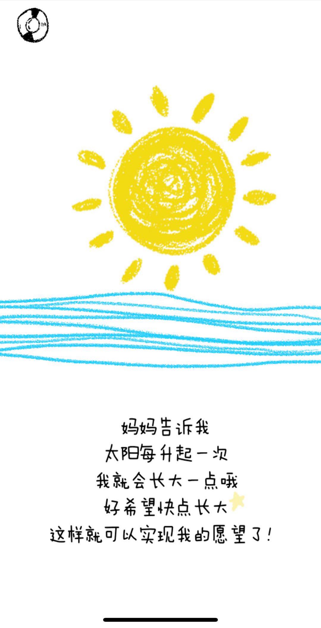 设计上,画面风格模仿幼儿蜡笔画风格,画面简单。前面加载页是温暖色的黄色星星与太阳,随后就是黑白色的视频动画,用户需要一直按着屏幕才能让视频进行,否则黑暗就会包围孩子,凸显了身处绝境的孩子需要社会爱心救援才能渡过难关,配上小孩子天真的内心独白,真是分分钟打动大宝这颗老阿姨的心。最后的许愿池是彩色的,海报也是蜡笔涂鸦风格,烘托了孩子真实烂漫的内心世界。