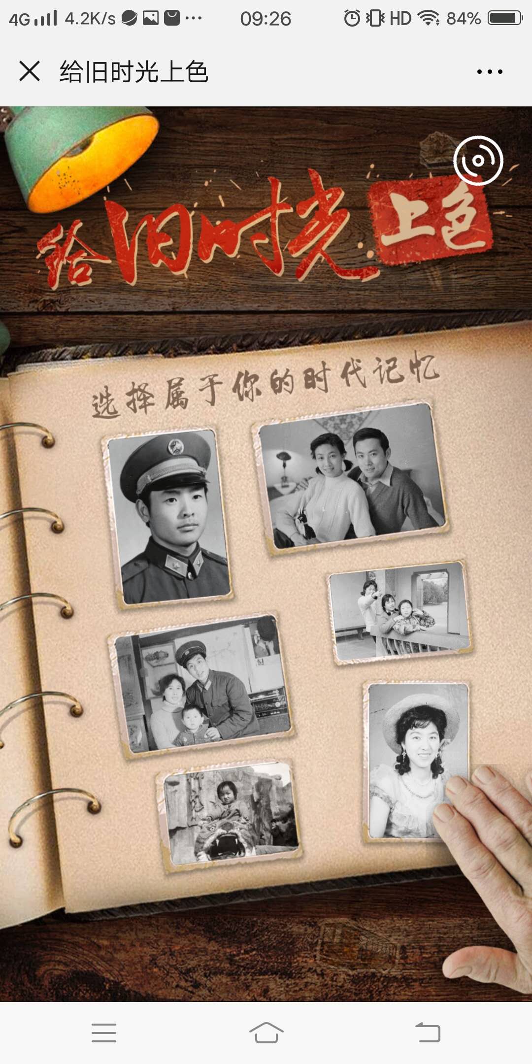 策划上,H5进入页面,提出“记忆会褪色吗”引发用户的思考,配上老照片作为首页,紧接着让用户选出自己记忆中的老照片的模样,系统示范给照片上色。最后用户自己上传照片上色后生成图片保存。