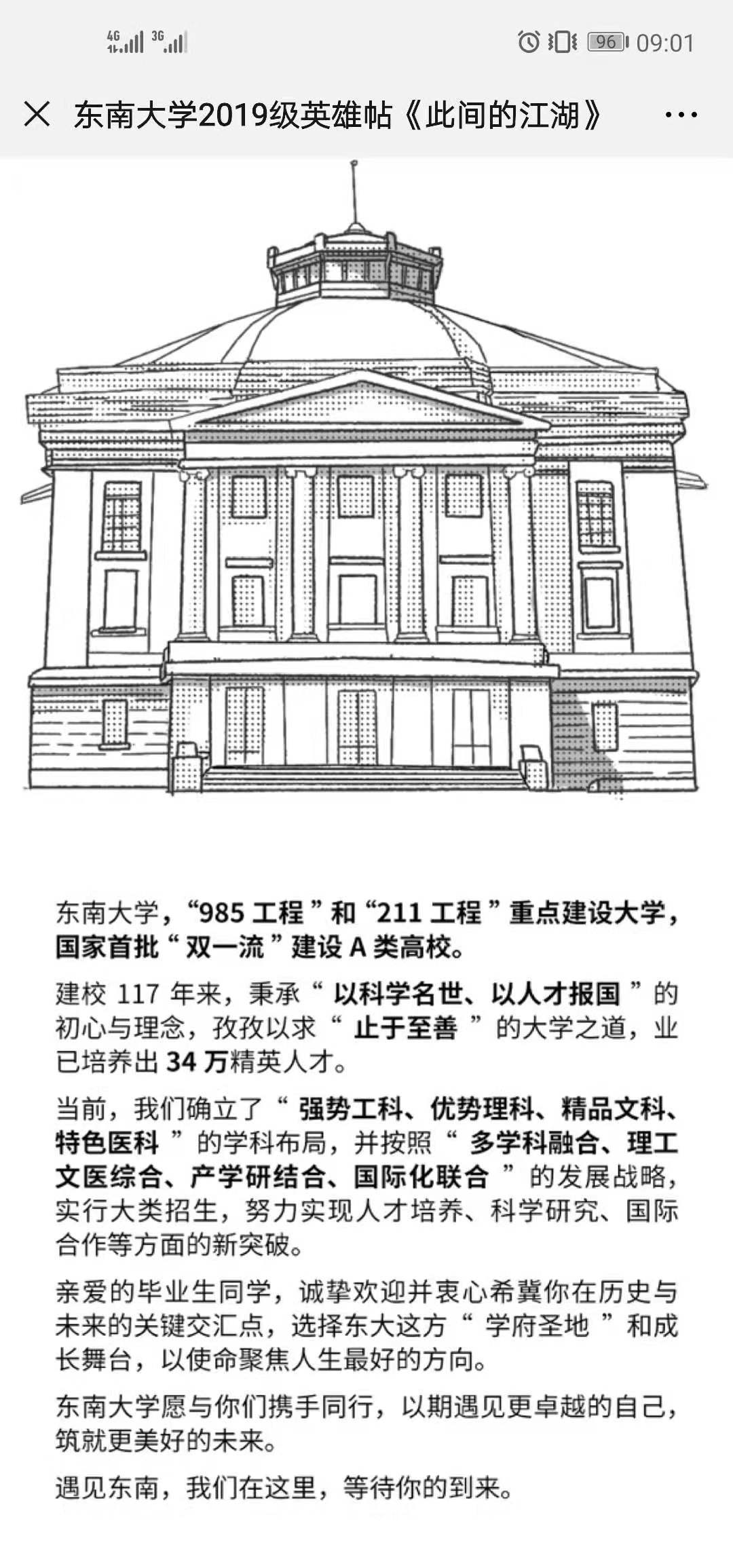 东南大学招生办公室出品:东南大学2019级英雄帖《此间的江湖》