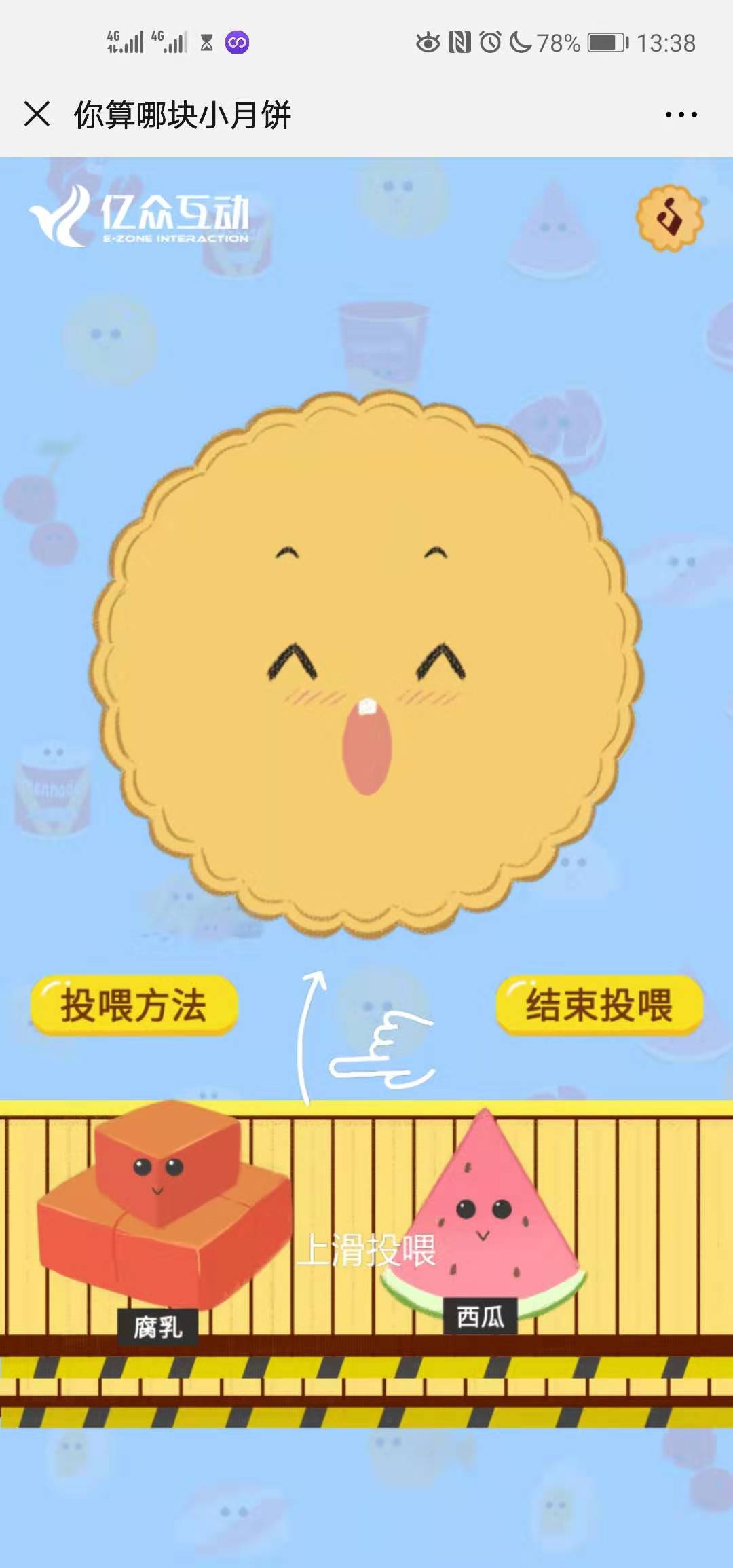 玩家给月饼喂食不同的食物,最后生成一个海报页面,海报可以用于保存、转发。