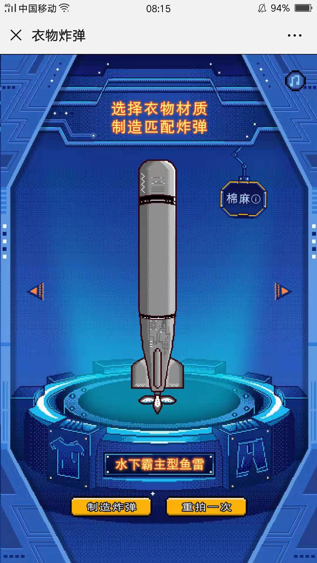 用户进入H5后,点击马上制作,上传衣物照片,生成炸弹,炸掉地球一小块,最后生成海报。
