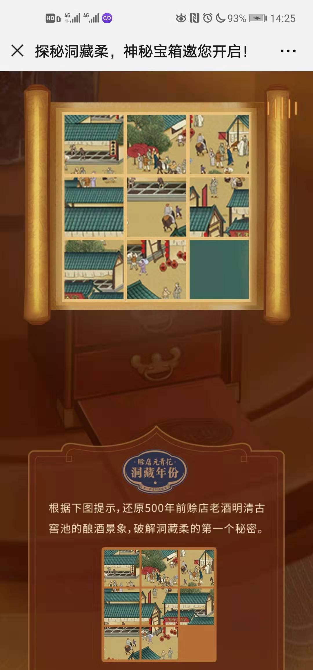 用户通过玩游戏的形式参与品酒活动,游戏分三关,分别为拼图,找线索和填词成宣传语。完成闯关后还能够查看自己的排行榜