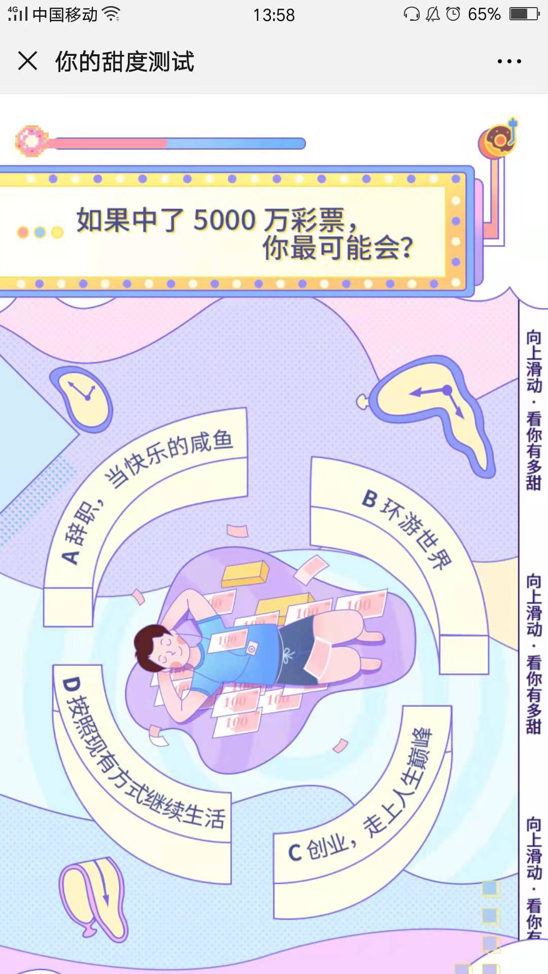 用户进入H5后,点击开始测试,一共6道题,答完题,为小狗画上眼睛,输入姓名,选择性别,最后会生成专属海报。
