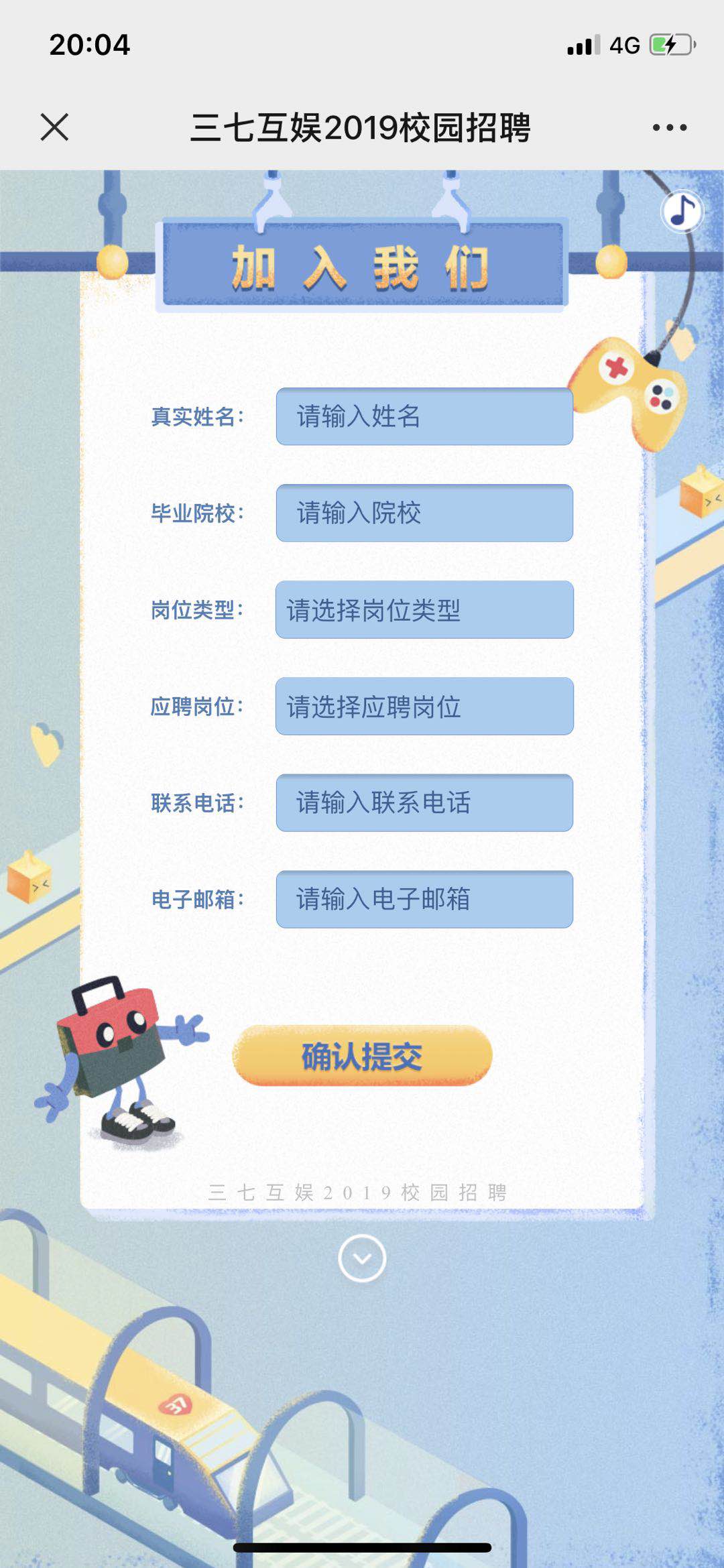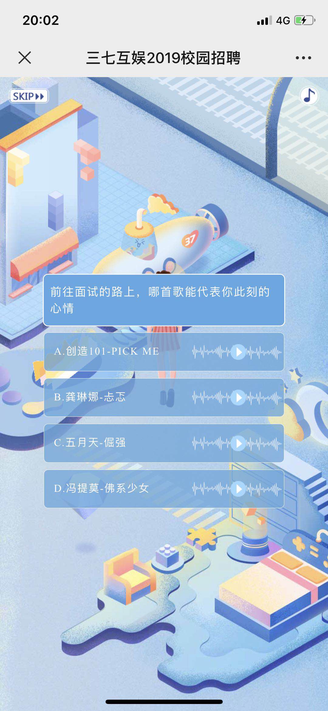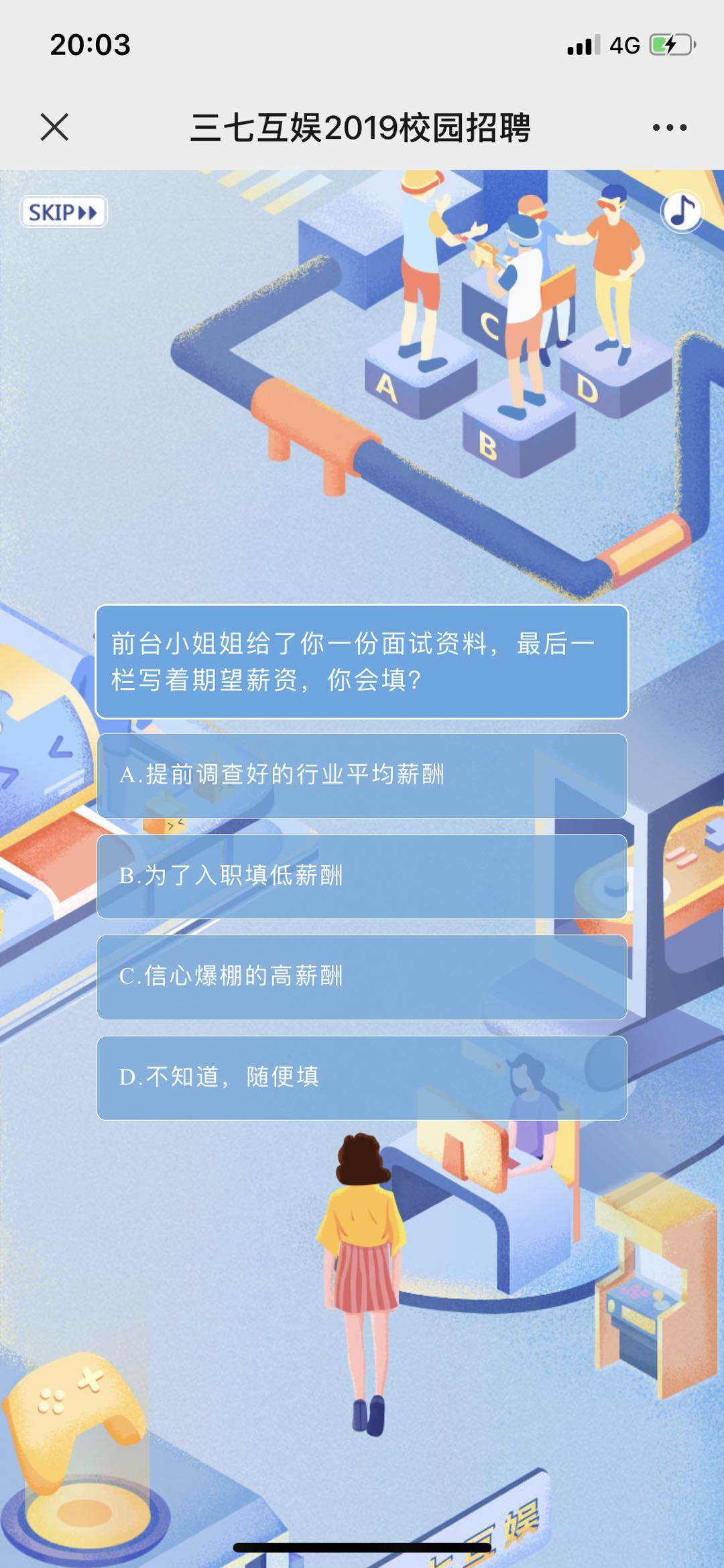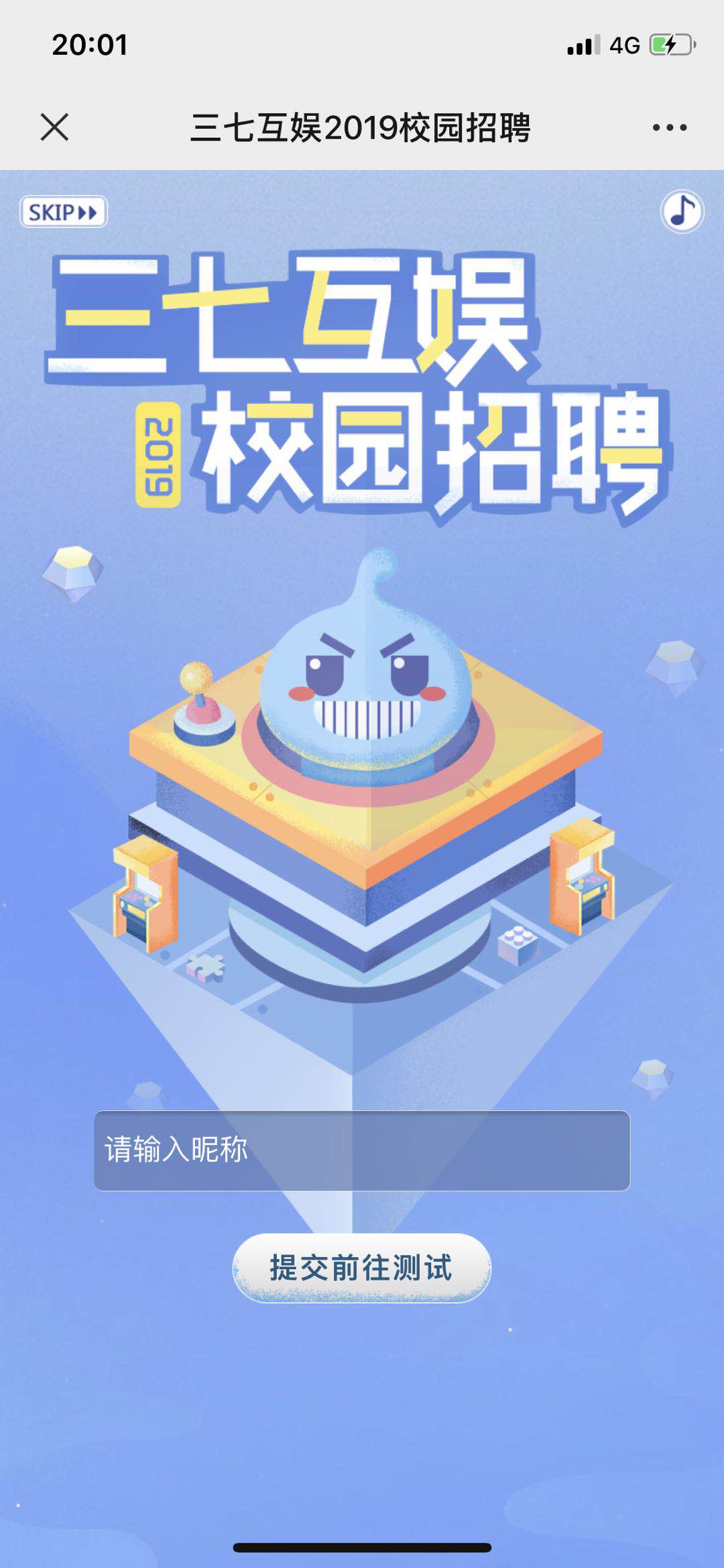1.这是三七互娱公司以测试形式做的一个招聘h5