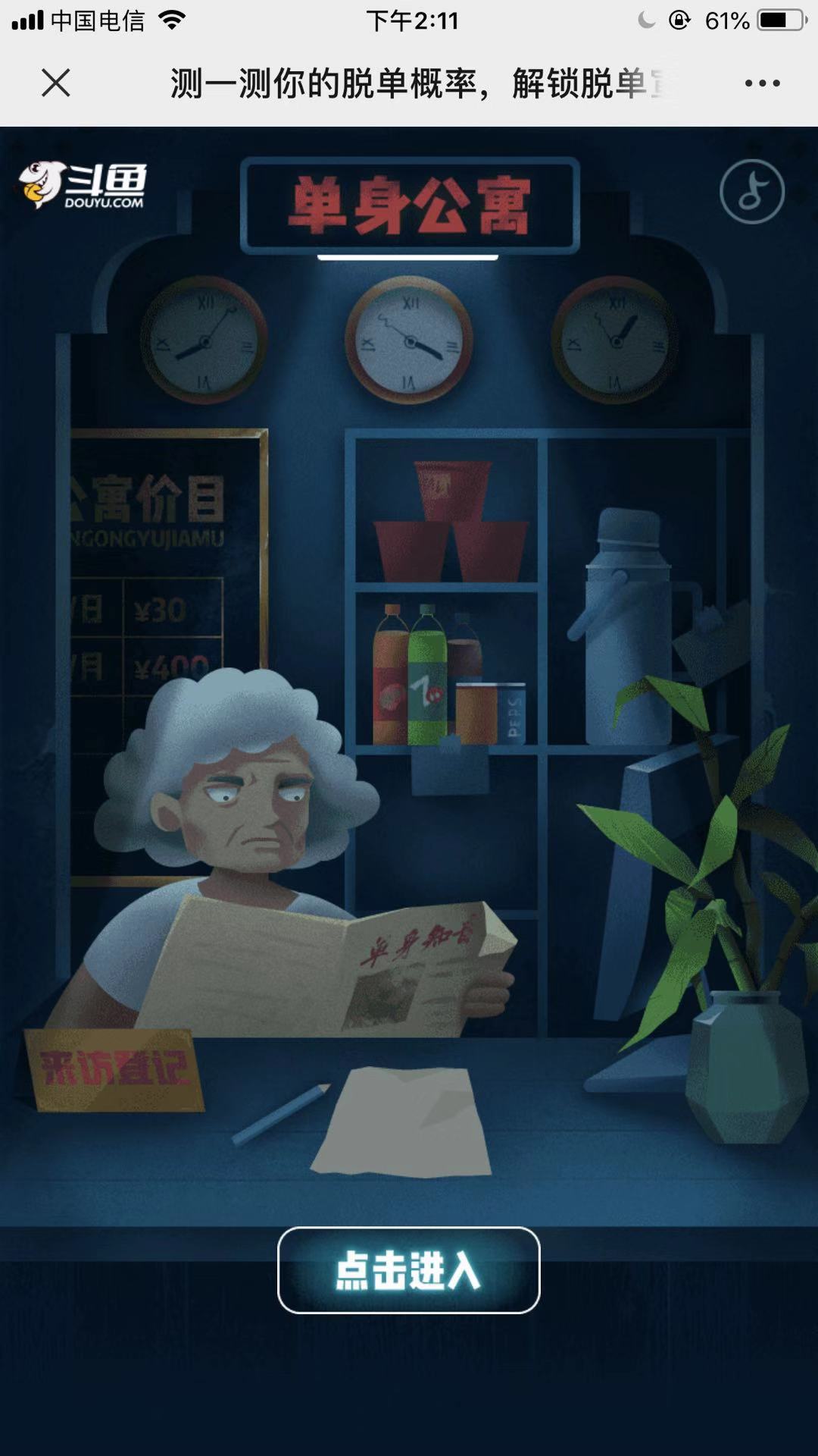 斗鱼TV:测测你的脱单概率,解锁脱单宣言