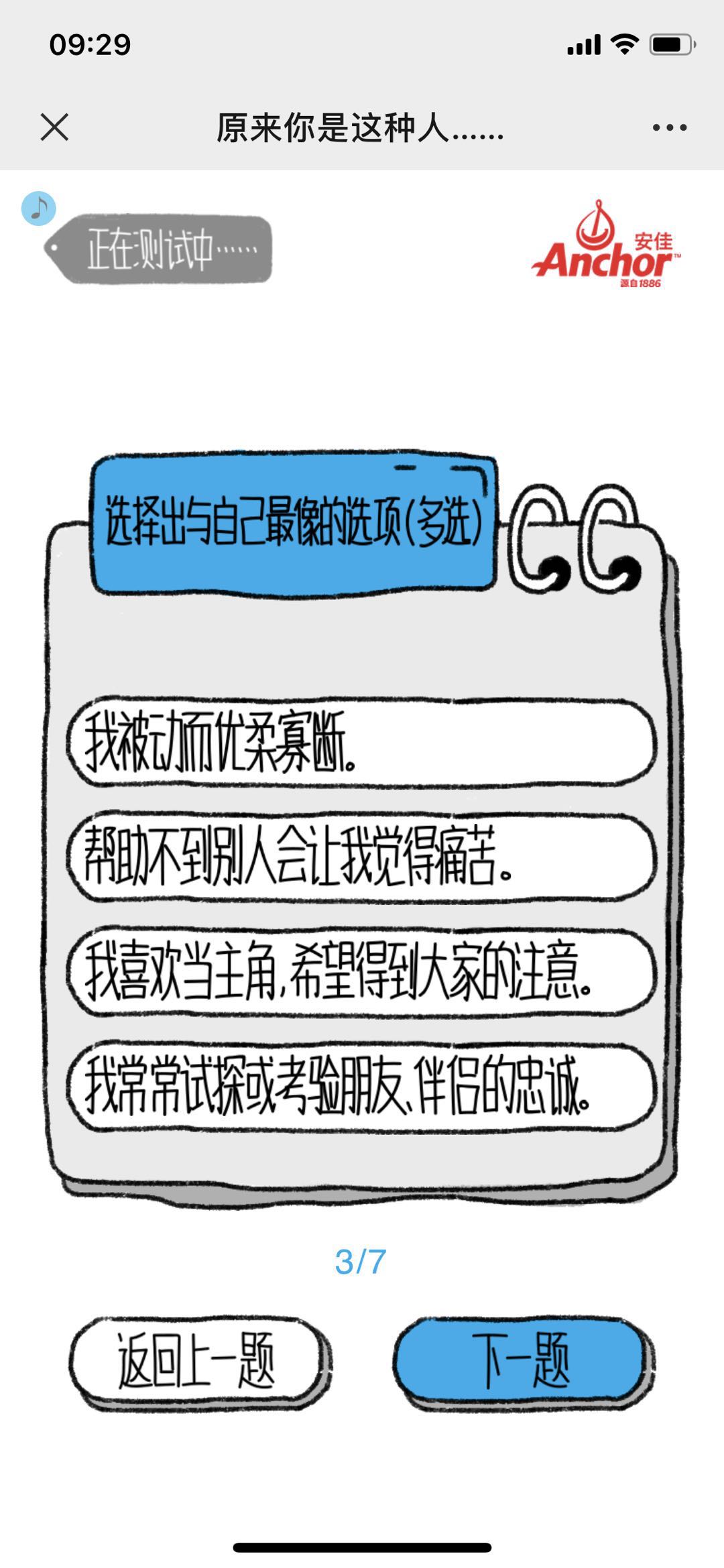 2.h5一共7道测试题,测完后会生成一张你的人格海报,可以长按保存分享
