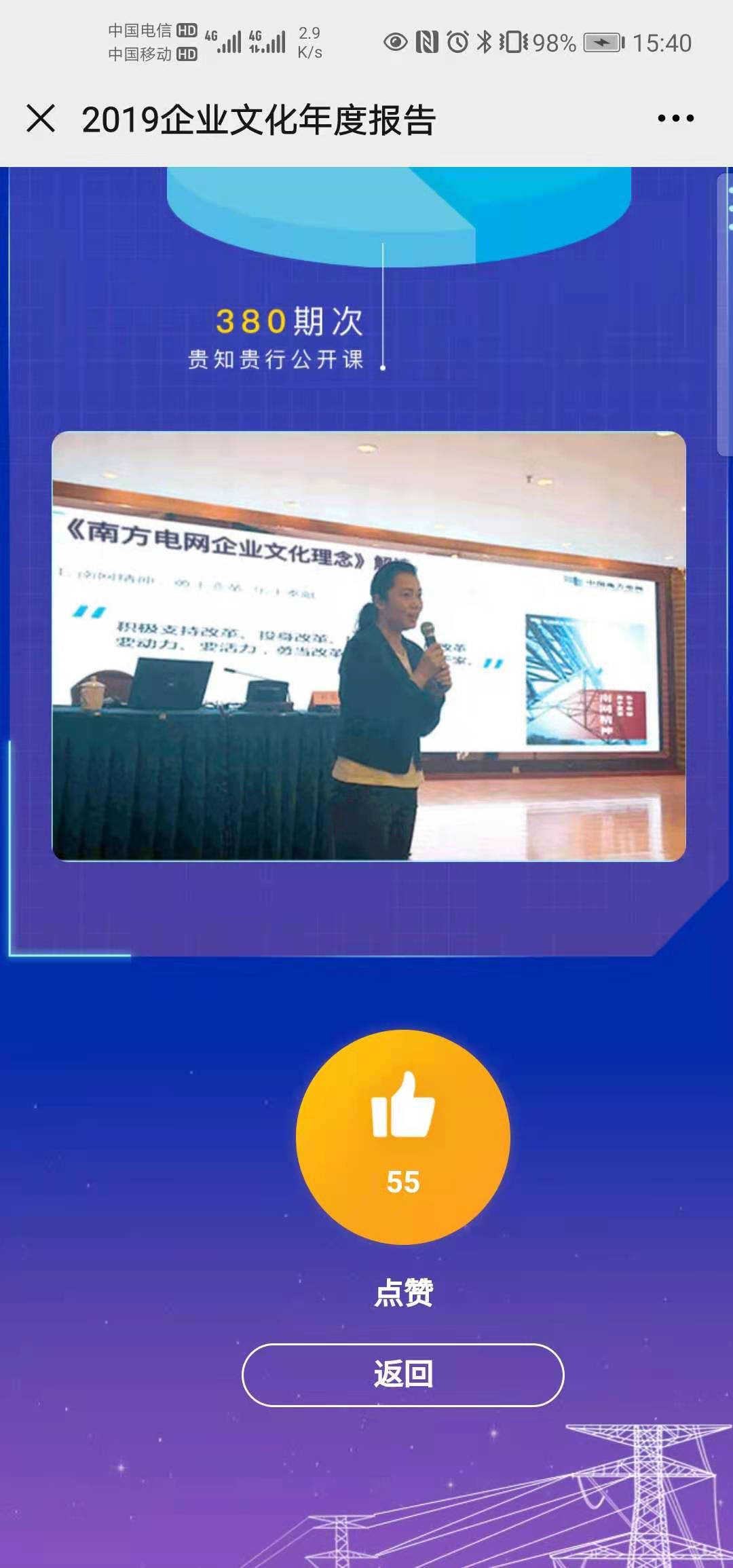 用户打开h5后,点击开启报告进入长页面,滑动长页面可以观看宣传内容,最下面有四个板块,用户可以点击不同的版块观看不同的内容,在每个板块的最后可以进行点赞和返回首页